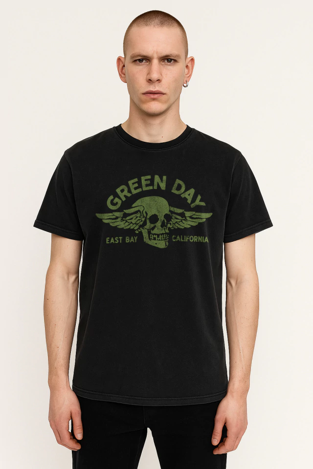Sumá personalidad a tu look con la Remera Green Day East Bay California. Confeccionada en 100% algodón y proceso acid para un efecto gastado único, ofrece cuello redondo, mangas cortas y estampa exclusiva en el frente. Su calce regular garantiza comodidad y estilo para todos los días. Ideal para quienes buscan destacar con autenticidad y confort. ¡No te quedes sin la tuya!
