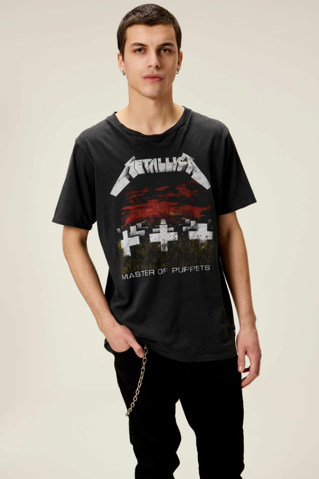 Viví la esencia del rock con la remera Metallica Master Of Puppets. Con cuello redondo y mangas cortas, su calce regular te brinda comodidad todo el día. Destaca su estampa frontal icónica y el exclusivo proceso acid, que le otorga un look gastado y auténtico. Confeccionada en 100% algodón, es ideal para fans y amantes del estilo urbano.